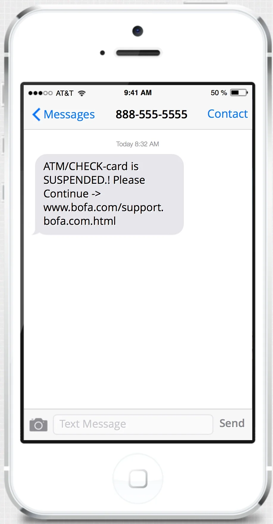 Tip of the Week - November 1, 2016 - Beware of Fake Bank of America Text or SMS Messages